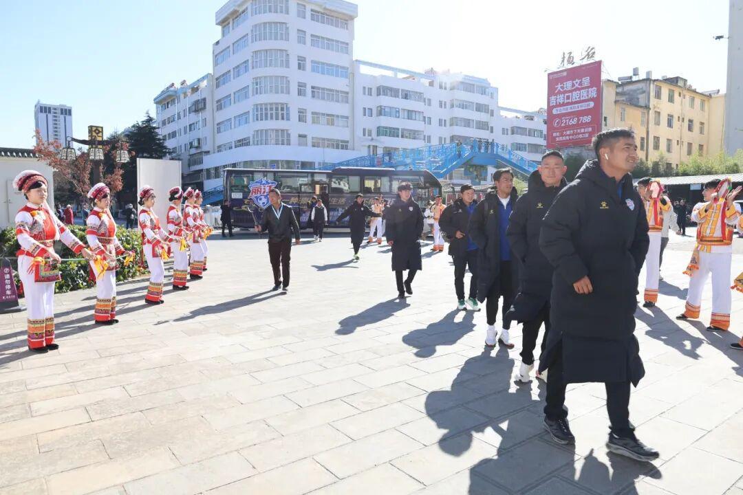 刚下大巴,队员们就被大理赛区的热情包围了。身着绚丽民族服饰的姑娘们,手持霸王鞭翩翩起舞,清脆的鞭响与欢快的节奏交织成灵动的乐章;另一边,八角鼓的鼓点轻快,小伙子们面带灿烂笑容,用这场极具大理特色的欢迎仪式,迎接丽江队的到来。