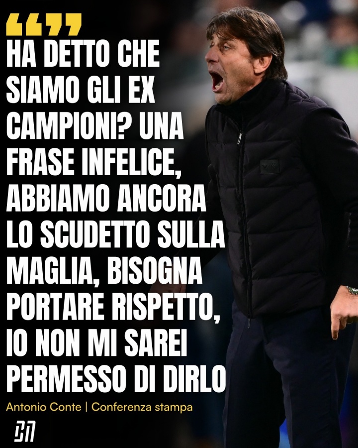 孔蒂今天表示:“斯帕莱蒂是说战胜了前意大利冠军吗?如果确实说过这样的话,这当然是非常不妥的表述,毕竟我们的球衣上依然绣着冠军盾徽,必须给予尊重。我绝不会允许自己这样评价其他球队。”